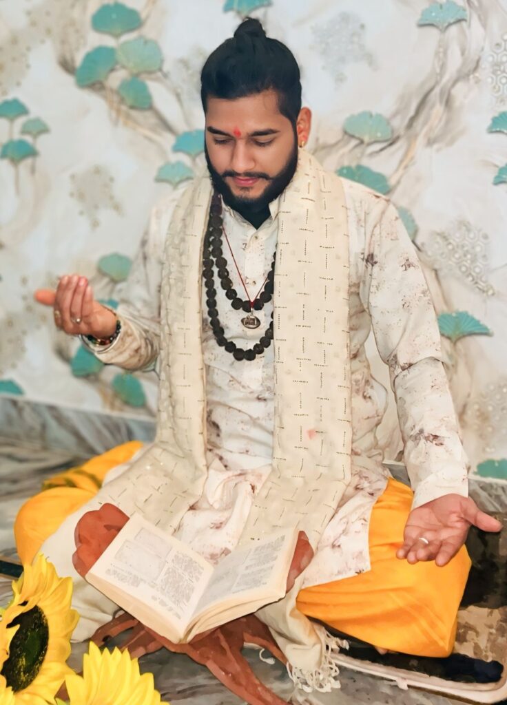 Dr. Naveen Dutt completed his Shastri degree in 2020, followed by Acharya in 2021, and later earned his PhD in Astrology in March 2025. With strong academic credentials and deep spiritual grounding, he seamlessly took charge of his father’s life-long work.