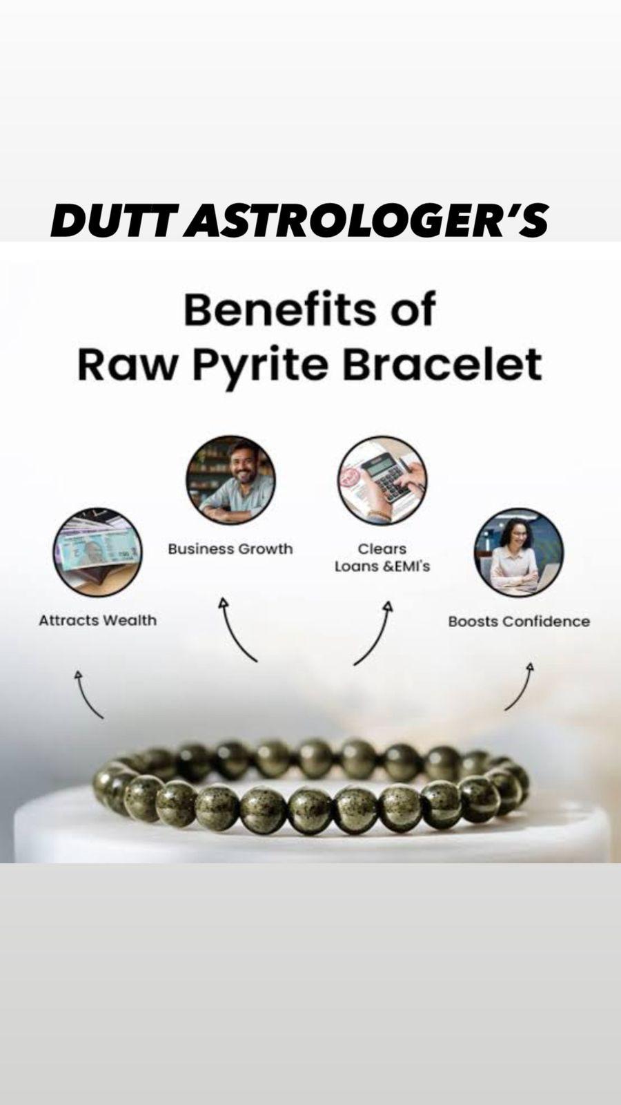 Pyrite Bracelet is believed to attract wealth, prosperity, and success while strengthening confidence and willpower. It also helps protect against negative energies and supports focus, motivation, and financial stability.